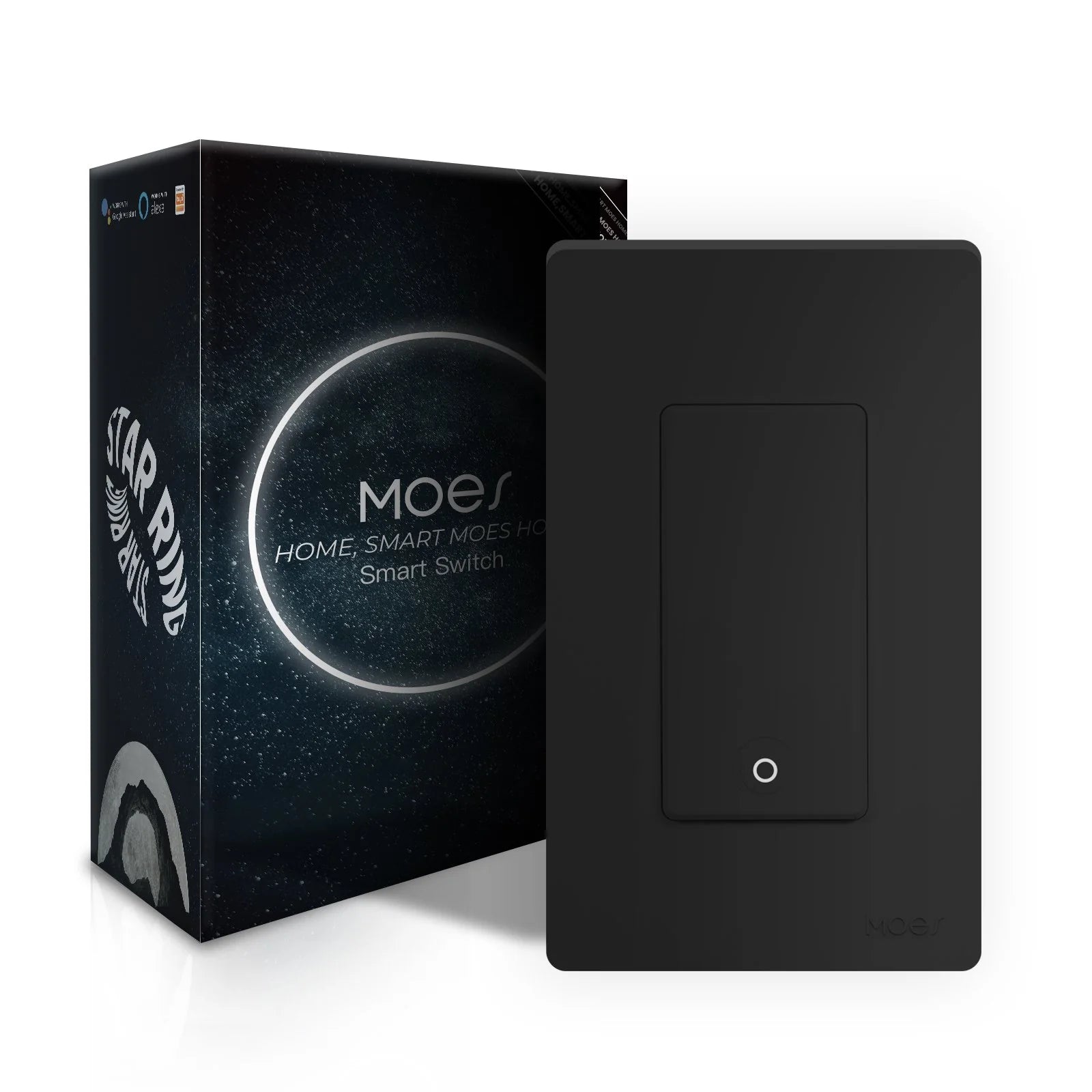 MOES Star Ring 2nd Generation Smart Single Pole 3 Way WIFI Switch features an upgraded star ring design that not only adds a touch of elegance to your home but also provides guidance in low-light conditions. Versatile and convenient, it can be used as a 3-Way light switch or a single pole switch, giving you full control over your lighting from multiple locations. Best of all, it doesn't require a hub and is compatible with popular voice control platforms such as Alexa, Google Assistant, and SmartThings. With the MOES APP, you can even remotely manage your lights from anywhere at any time. Take advantage of its smart scheduling feature to align your lighting with your daily routine and utilise the countdown function to save energy effortlessly.
