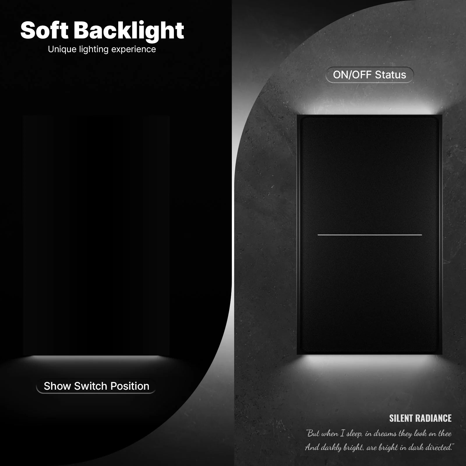 This 2-in-1 smart switch works both as a standard light switch and a scene controller, allowing you to create personalised automation settings through the SmartLife App. The gentle backlight ensures visibility in the dark without being disruptive.